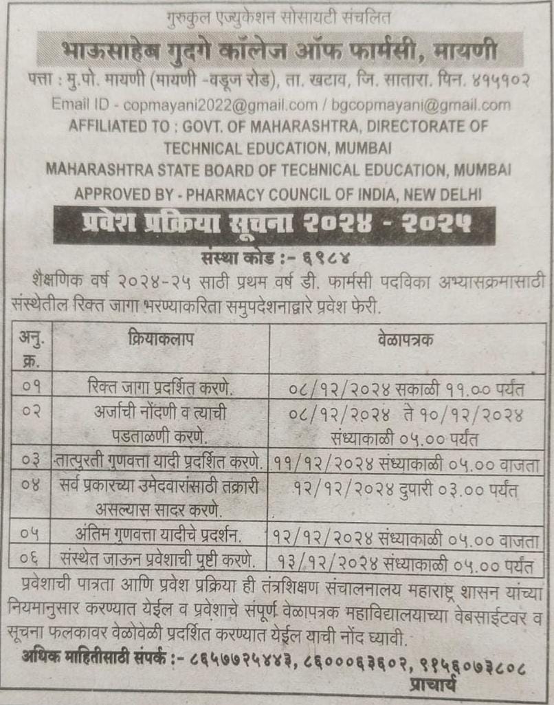 Welcome To Bhausaheb Gudage College of Pharmacy, mayani